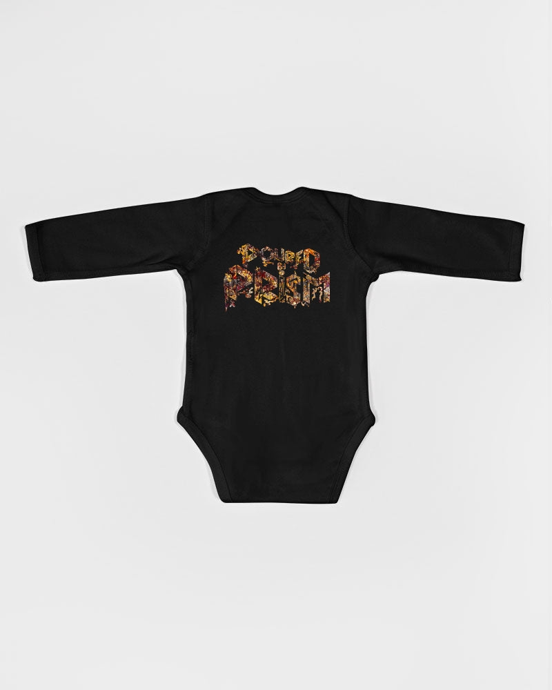 About The ArtThe Inferno PBP Year IV Season V"The Inferno"This collection was born in fire...not destruction, but transformation.Inspired by solar flares, supernovas, and cosmic blazes, The Inferno represents the unpredictable heat of creation. Product DetailsThis long sleeve onsie with bottom snaps won't come untucked, so it stays neat no matter how the baby move. Made of soft cotton knit that's gentle on baby's skin and the lap shoulder neckline makes the dressing very easy.