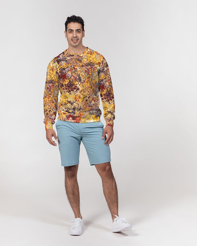 About The ArtThe Inferno PBP Year IV Season V"The Inferno"This collection was born in fire...not destruction, but transformation.Inspired by solar flares, supernovas, and cosmic blazes, The Inferno represents the unpredictable heat of creation. Product DetailsYou can never have too many classics, including our Men's Classic French Terry Crewneck Pullover. Its regular fit is not too big, but not too tight so you can layer it or wear it alone. Finished with a smooth surface on the outside and loop knitting inside for the right amount of warmth and comfort.