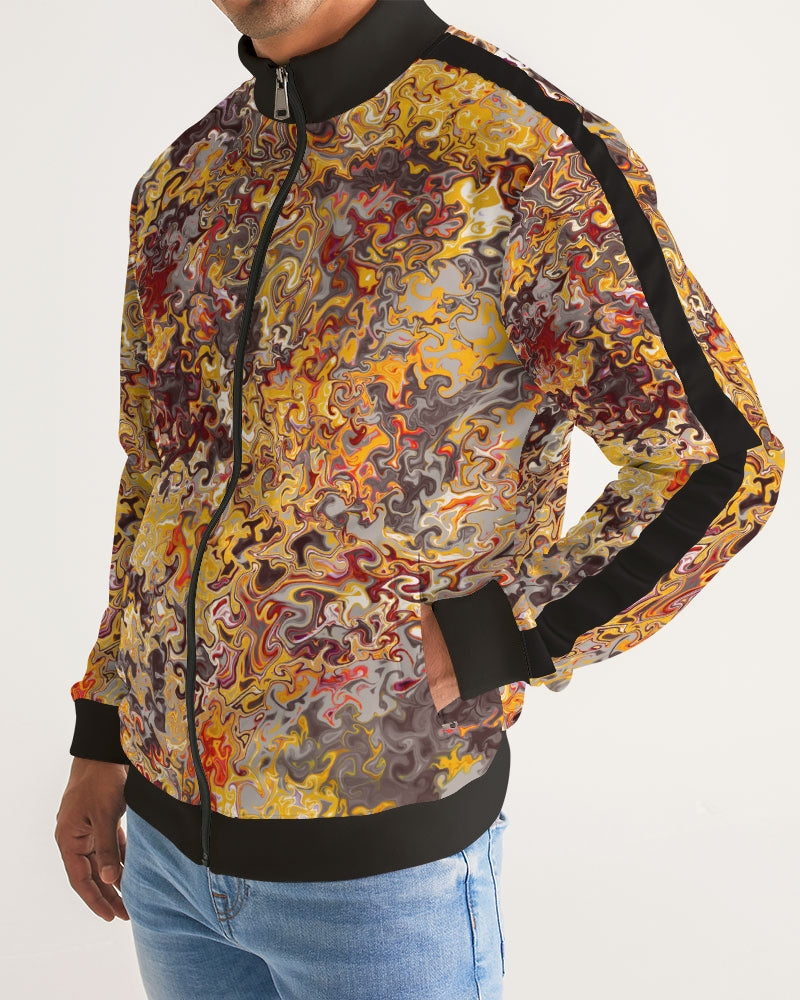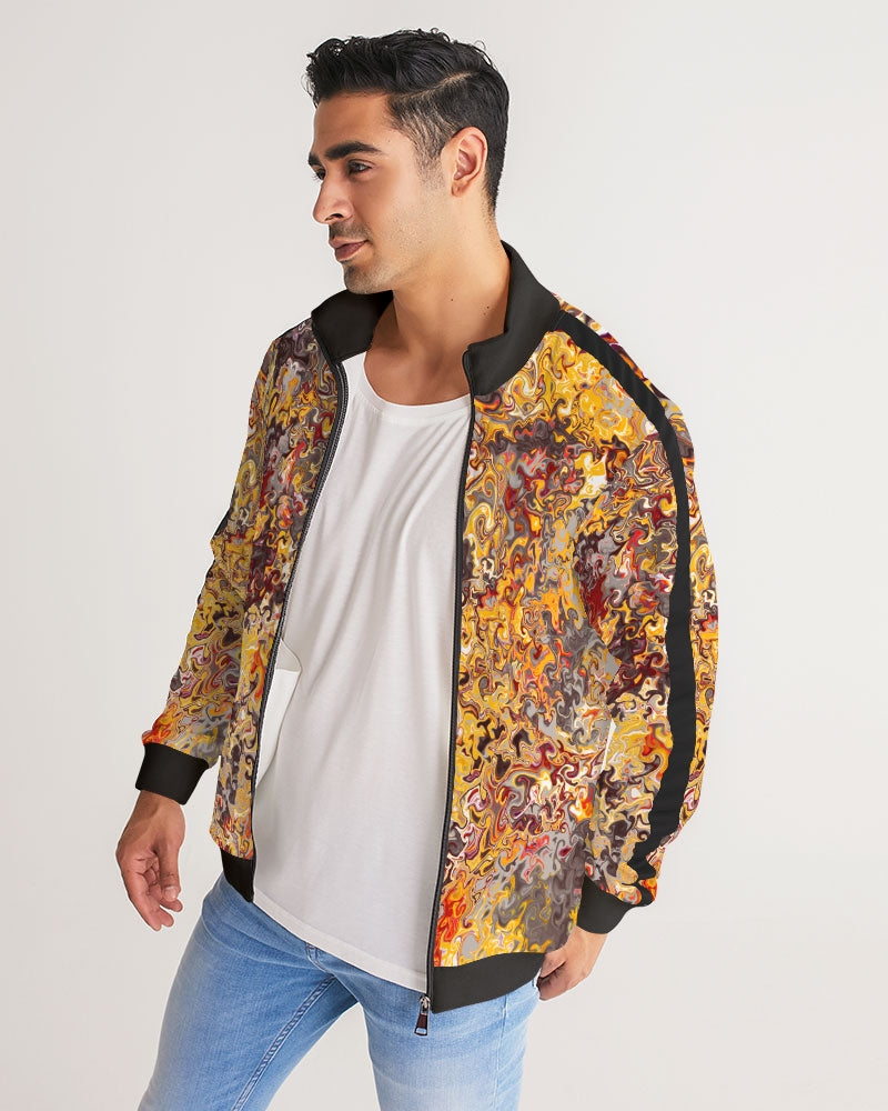 About The ArtThe Inferno PBP Year IV Season V"The Inferno"This collection was born in fire...not destruction, but transformation.Inspired by solar flares, supernovas, and cosmic blazes, The Inferno represents the unpredictable heat of creation. Product DetailsGet moving in comfort and style with our Men's Stripe-Sleeve Track Jacket. Its ribbed collar, cuffs and hem are the details to make it a casual go-to or top layer before getting in a workout.