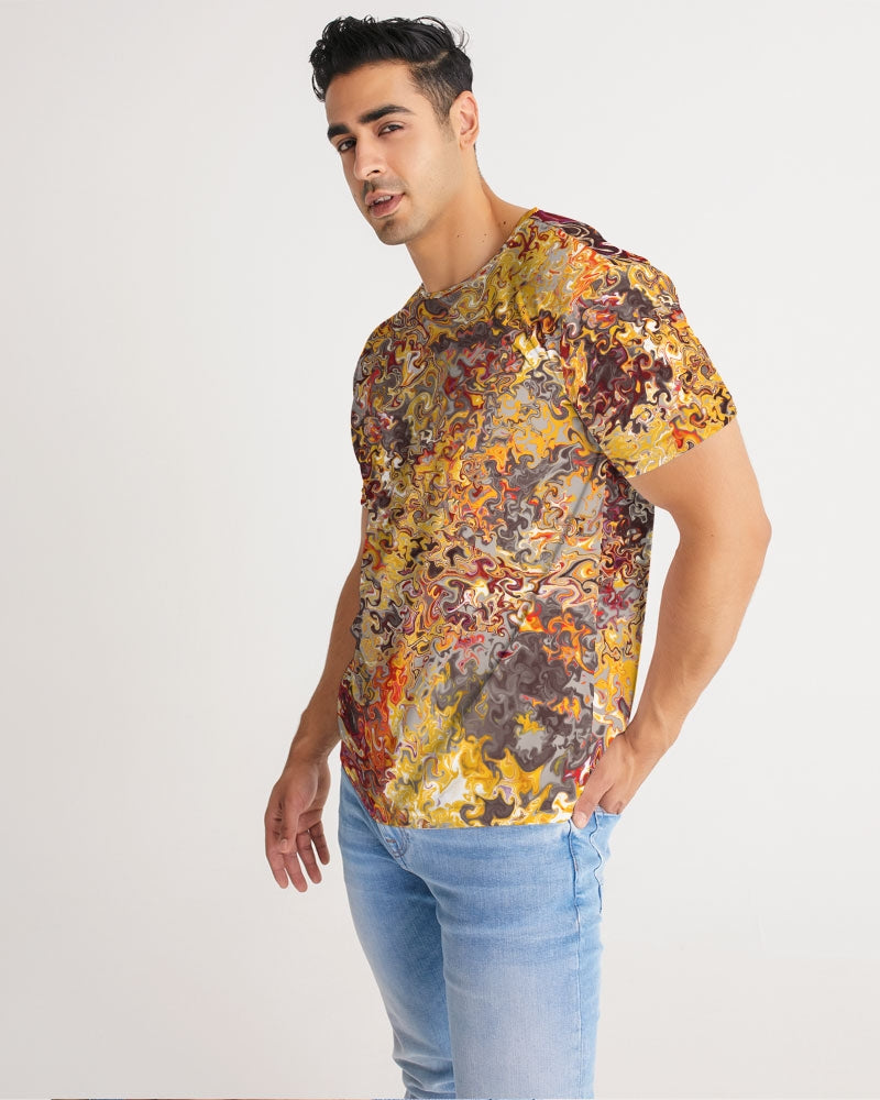About The ArtThe Inferno PBP Year IV Season V"The Inferno"This collection was born in fire...not destruction, but transformation.Inspired by solar flares, supernovas, and cosmic blazes, The Inferno represents the unpredictable heat of creation. Product DetailsHandmade with premium wear resistant fabric, this carefully crafted tee is a daily wardrobe essential. Dressed up or down, our Men's Tee offers complete comfort and style.