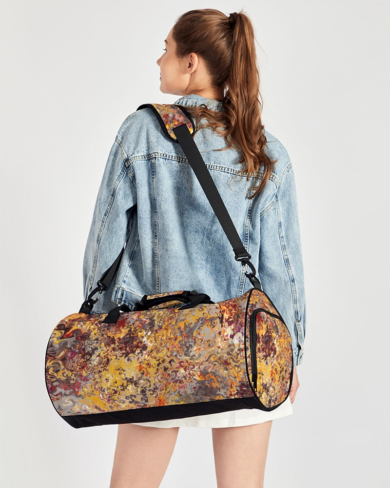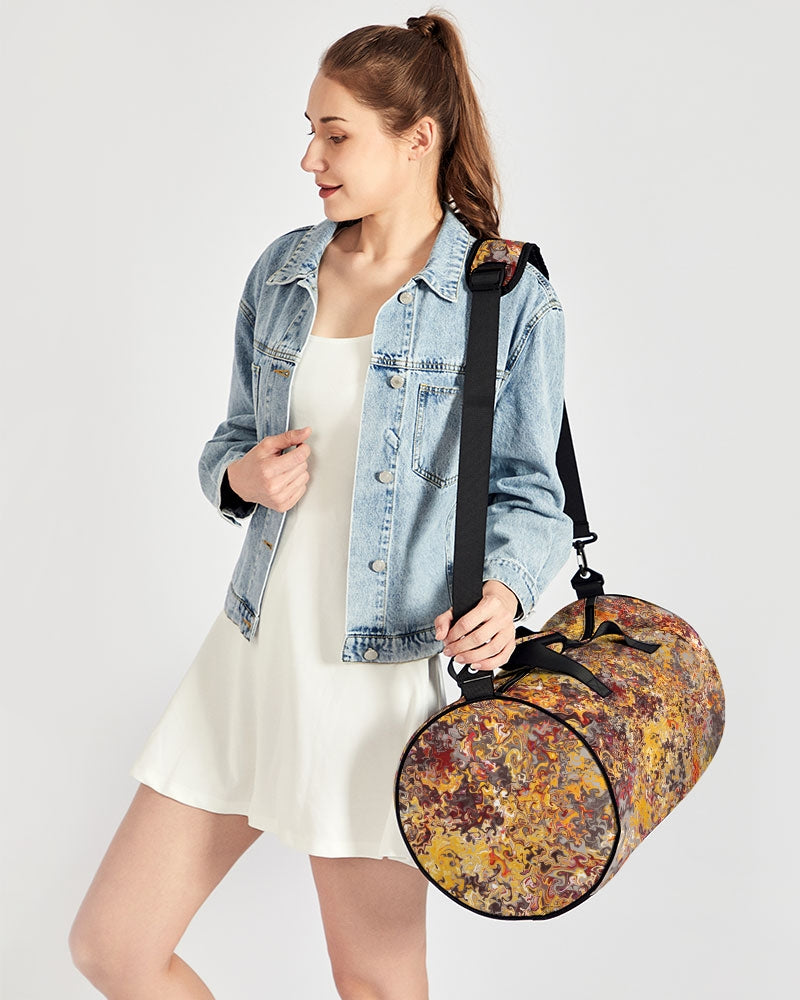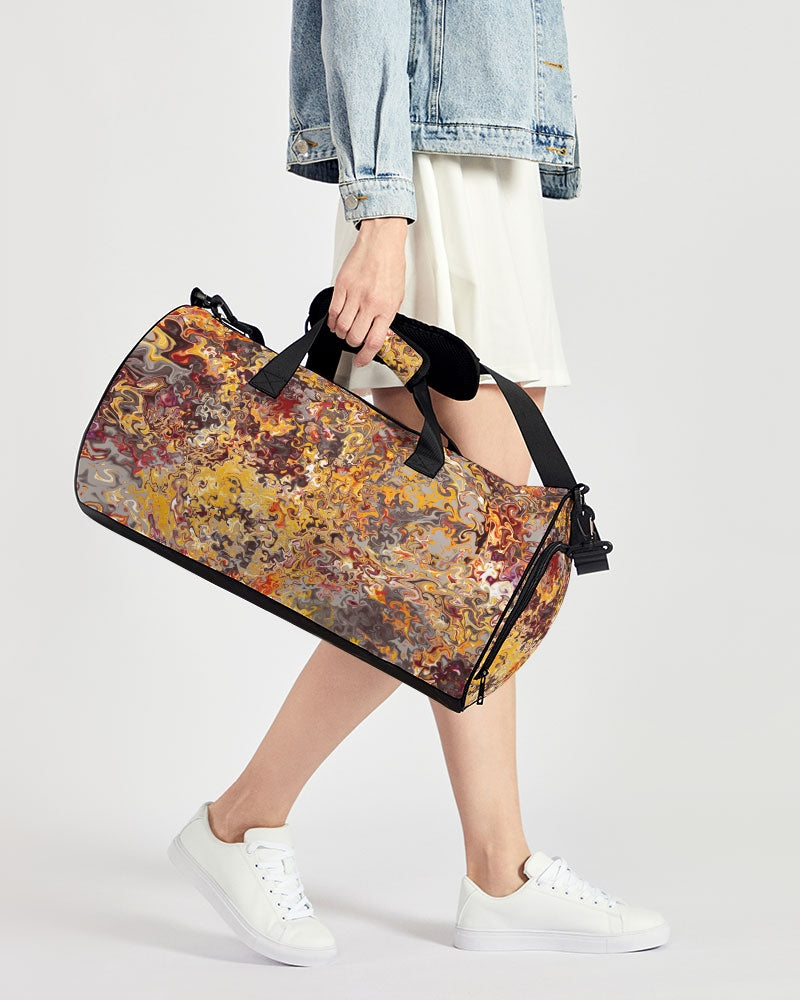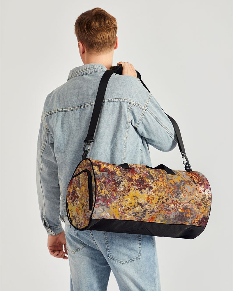 About The ArtThe Inferno PBP Year IV Season V"The Inferno"This collection was born in fire...not destruction, but transformation.Inspired by solar flares, supernovas, and cosmic blazes, The Inferno represents the unpredictable heat of creation. Product DetailsOur Sports Duffle Bag is the ultimate companion for athletes and fitness enthusiasts. Featuring a dedicated shoe compartment, it keeps your sneakers separate from your gear, ensuring everything stays fresh. With two sturdy handles, a convenient top zipper, and an adjustable crossbody strap, this bag provides easy access and versatile carrying options for your gym or sports essentials, making it the perfect choice for workouts, games, and active lifestyles.