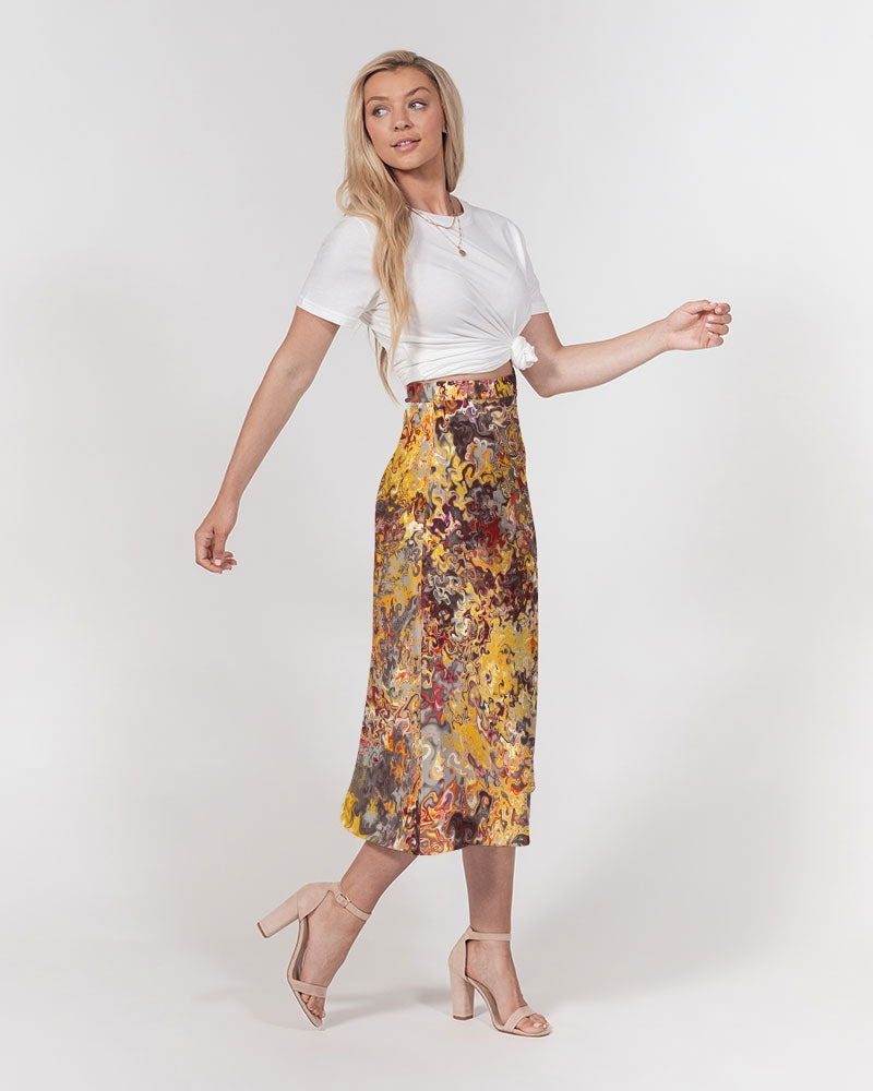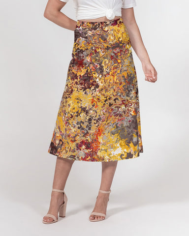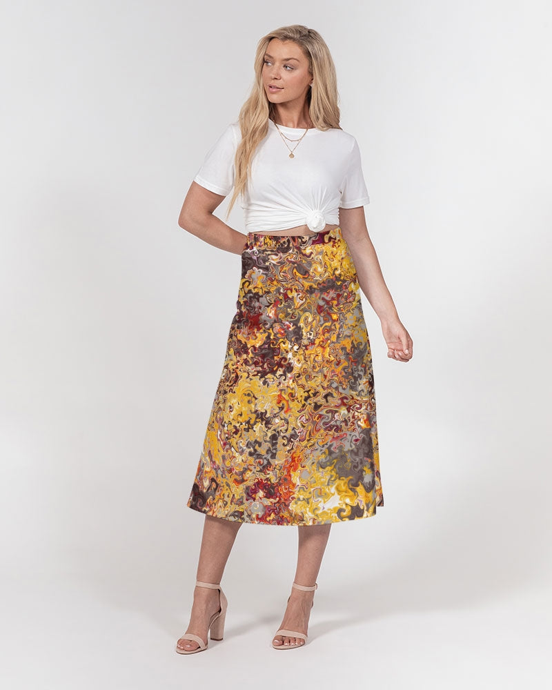 About The ArtThe Inferno PBP Year IV Season V"The Inferno"This collection was born in fire...not destruction, but transformation.Inspired by solar flares, supernovas, and cosmic blazes, The Inferno represents the unpredictable heat of creation. Product DetailsTimeless and chic, our Women's A-line Midi Skirt is made from a beautifully draped smooth chiffon. Polished with a thick waistband and side zipper, it's fitted at your waist and has a flowy bottom.