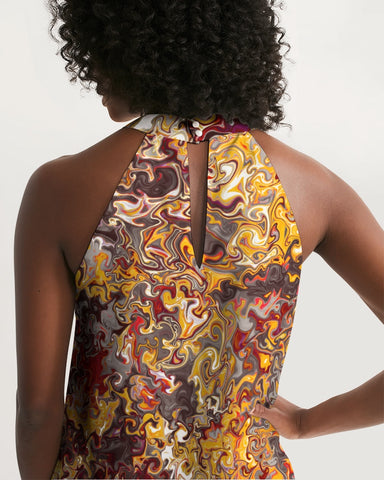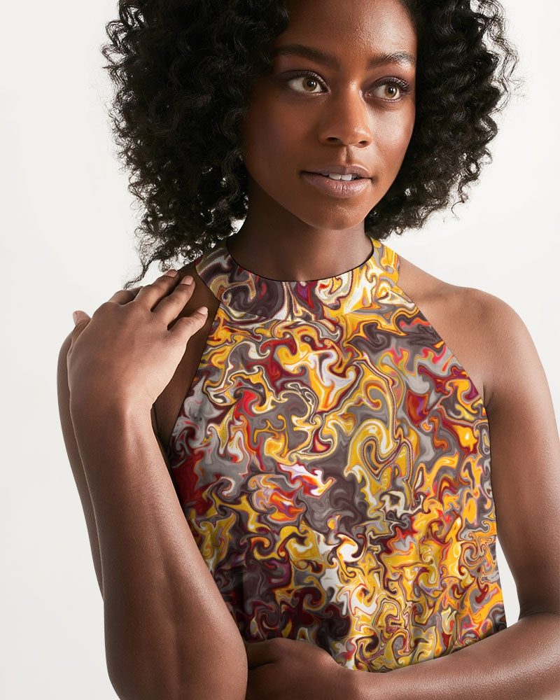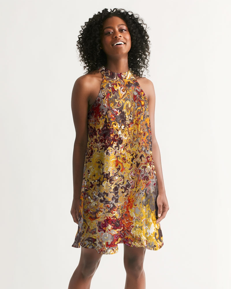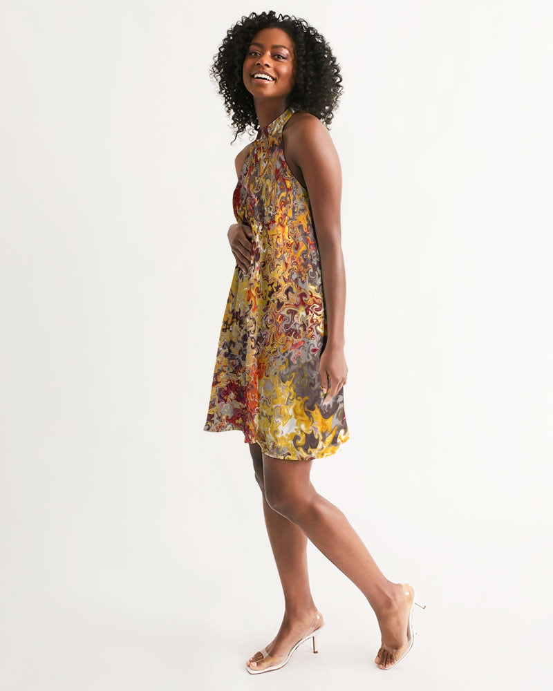 About The ArtThe Inferno PBP Year IV Season V"The Inferno"This collection was born in fire...not destruction, but transformation.Inspired by solar flares, supernovas, and cosmic blazes, The Inferno represents the unpredictable heat of creation. Product DetailsElegant yet simple, your personalized design will look phenomenal in our Women's Halter Dress. Handmade from polyester chiffon material and fastened in the back with two chic pearl buttons.
