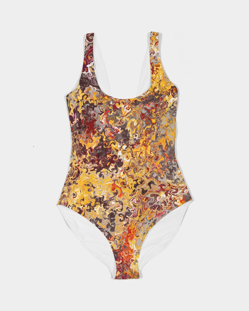 About The ArtThe Inferno PBP Year IV Season V"The Inferno"This collection was born in fire...not destruction, but transformation.Inspired by solar flares, supernovas, and cosmic blazes, The Inferno represents the unpredictable heat of creation. Product DetailsWith its simple scoop neck and modest cuts, our Women's One-Piece Swimsuit compliments all body types. Stretchy, padded, and built-in UPF 50+, this swimsuit offers excellent comfort, support, and UV protection.