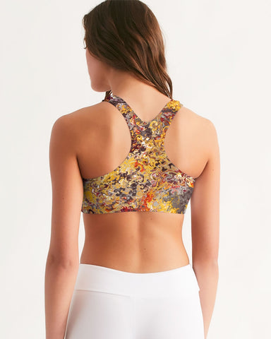 About The ArtThe Inferno PBP Year IV Season V"The Inferno"This collection was born in fire...not destruction, but transformation.Inspired by solar flares, supernovas, and cosmic blazes, The Inferno represents the unpredictable heat of creation. Product DetailsDesigned for all levels of activities, our high-tech Women's Seamless Sports Bra is crafted with care for full support and coverage. Lounge worthy in comfort or for activewear featuring stabilizing straps and compression fit. Prefer less snug? Size up for a more relaxed fit.