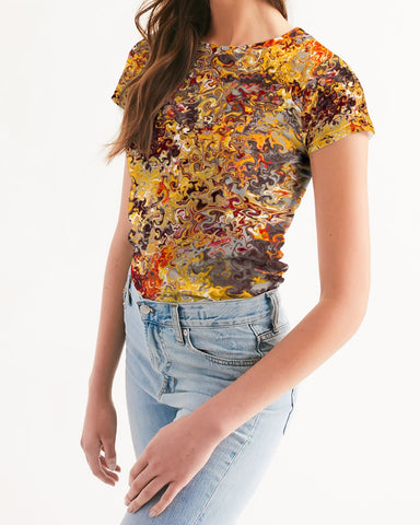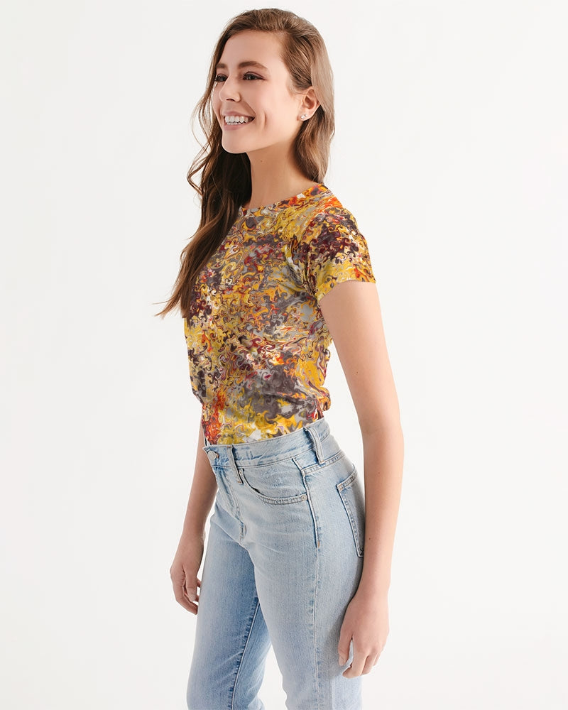 About The ArtThe Inferno PBP Year IV Season V"The Inferno"This collection was born in fire...not destruction, but transformation.Inspired by solar flares, supernovas, and cosmic blazes, The Inferno represents the unpredictable heat of creation. Product DetailsStep out with an instant classic! Dressed up or down, our fitted Women's Tee offers complete comfort and style. Handmade with premium wear resistant fabric, show off your curves with this carefully crafted tee.