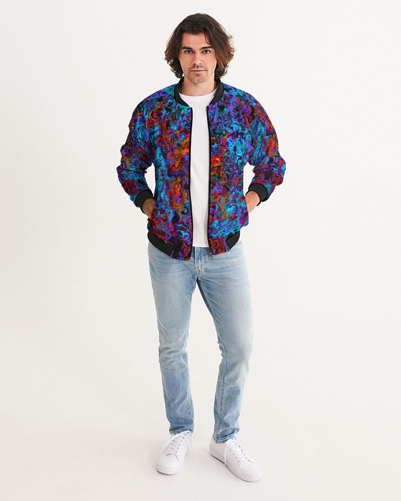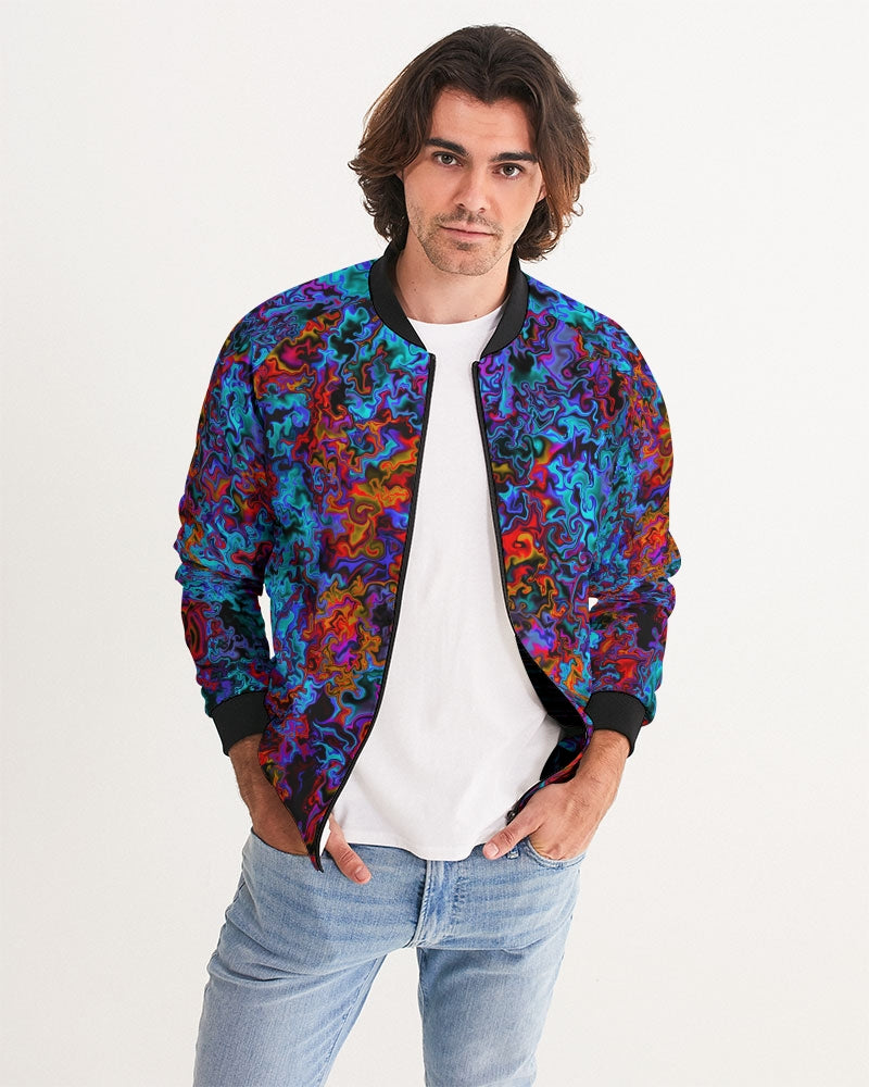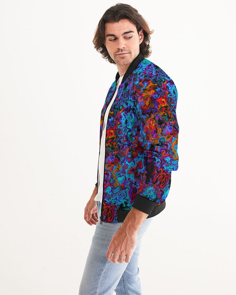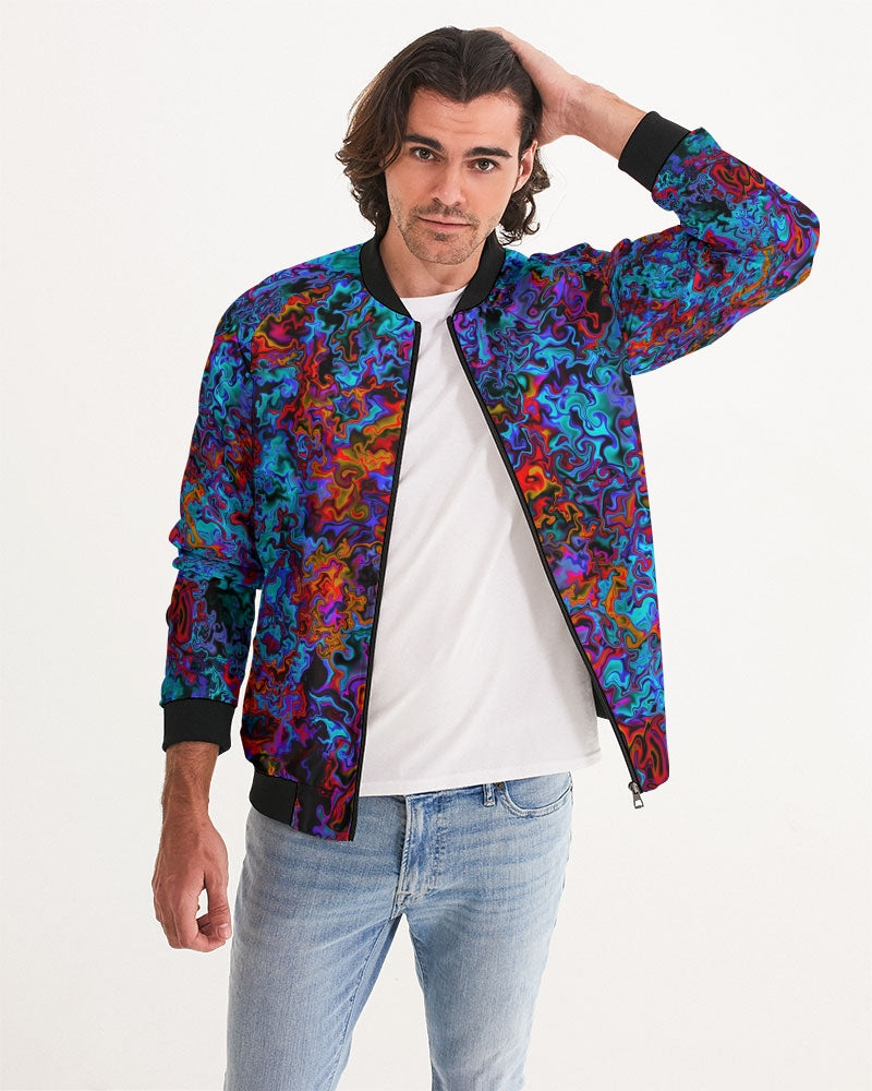 About The ArtThe Veil PBP Year IV Season V"The Veil"Inspired by The Veil Nebula also known as The Cygnus Loop, this collection represents awareness, resilience, clarity, and disillusionment. The Veil Nebula was created by a supernova explosion. The result of a cosmic cataclysm, its existence shows that after even the most world shattering moments, beauty lies beyond the chaos. Product DetailsHand-cut and crafted with care, your custom designed Men's Bomber Jacket is great for casual or sportswear. Its lightweight, airy fabric is lined with the perfect amount of insulation for the chillier months making this a great year round go-to.
