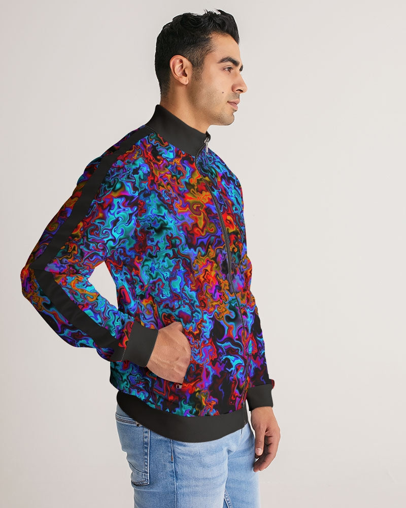 About The ArtThe Veil PBP Year IV Season V"The Veil"Inspired by The Veil Nebula also known as The Cygnus Loop, this collection represents awareness, resilience, clarity, and disillusionment. The Veil Nebula was created by a supernova explosion. The result of a cosmic cataclysm, its existence shows that after even the most world shattering moments, beauty lies beyond the chaos. Product DetailsGet moving in comfort and style with our Men's Stripe-Sleeve Track Jacket. Its ribbed collar, cuffs and hem are the details to make it a casual go-to or top layer before getting in a workout.