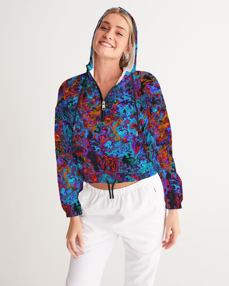 About The ArtThe Veil PBP Year IV Season V"The Veil"Inspired by The Veil Nebula also known as The Cygnus Loop, this collection represents awareness, resilience, clarity, and disillusionment. The Veil Nebula was created by a supernova explosion. The result of a cosmic cataclysm, its existence shows that after even the most world shattering moments, beauty lies beyond the chaos. Product DetailsMade of lightweight, water-resistant fabric, our Women's Cropped Windbreaker has flexible styling options. Look cute while you're on the go or rock a stylish look while on a run.