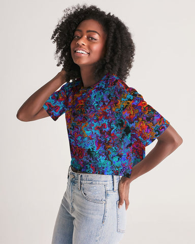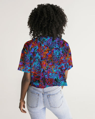 About The ArtThe Veil PBP Year IV Season V"The Veil"Inspired by The Veil Nebula also known as The Cygnus Loop, this collection represents awareness, resilience, clarity, and disillusionment. The Veil Nebula was created by a supernova explosion. The result of a cosmic cataclysm, its existence shows that after even the most world shattering moments, beauty lies beyond the chaos. Product DetailsMade of premium french terry, our Women's Lounge Cropped Tee is a step above the ordinary with its high quality fabric. Featuring dropped shoulders and an oversized fit, it's perfect for lounge or a relaxed look to wear on repeat.