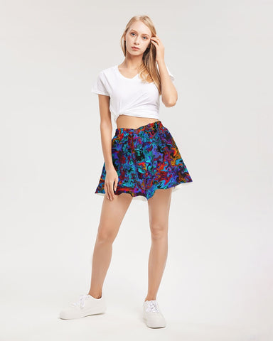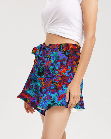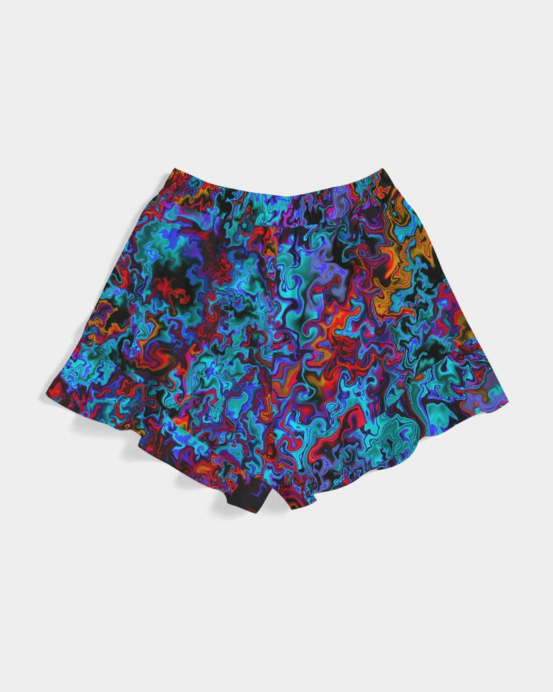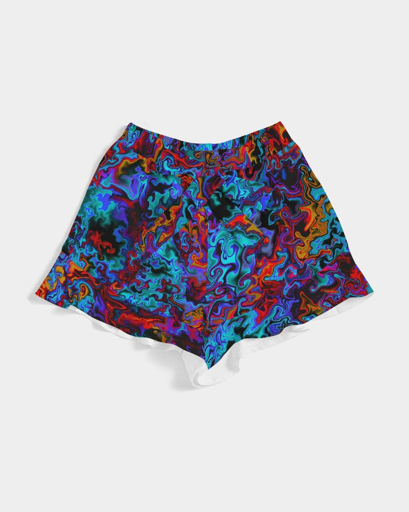 About The ArtThe Veil PBP Year IV Season V"The Veil"Inspired by The Veil Nebula also known as The Cygnus Loop, this collection represents awareness, resilience, clarity, and disillusionment. The Veil Nebula was created by a supernova explosion. The result of a cosmic cataclysm, its existence shows that after even the most world shattering moments, beauty lies beyond the chaos. Product DetailsThese comfortable shorts come in heavy chiffon fabric and are made for fun in the sun featuring a ruffle hem and elasticated tie waist. Dress them up or down, with a tee or with a blouse and sandals for happy hour!