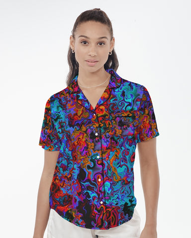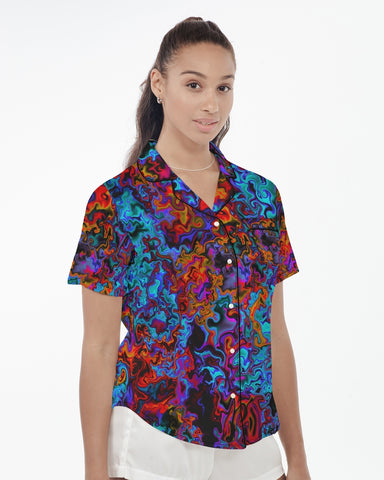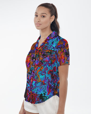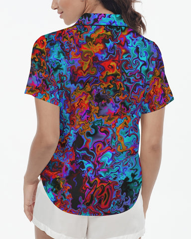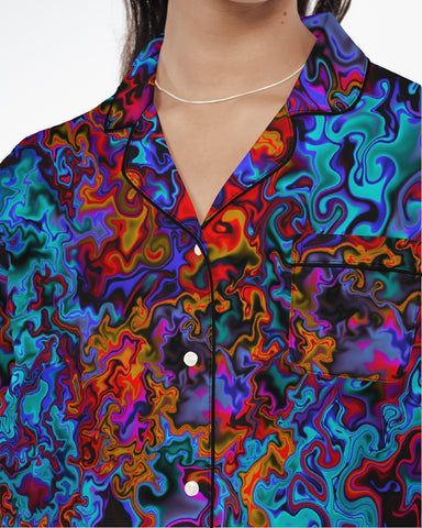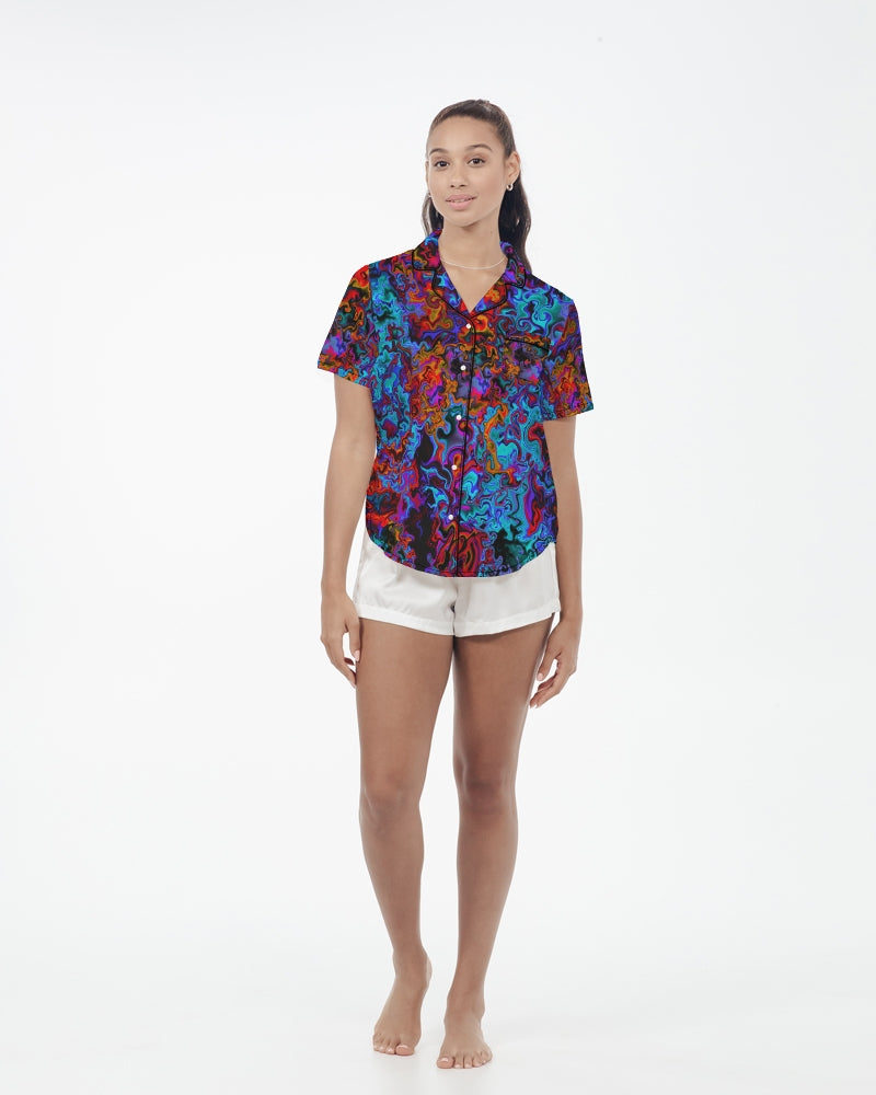 About The ArtThe Veil PBP Year IV Season V"The Veil"Inspired by The Veil Nebula also known as The Cygnus Loop, this collection represents awareness, resilience, clarity, and disillusionment. The Veil Nebula was created by a supernova explosion. The result of a cosmic cataclysm, its existence shows that after even the most world shattering moments, beauty lies beyond the chaos. Product DetailsElevate your sleepwear with our Women's Satin Short Sleeve Pajama Top, designed for both comfort and elegance. Made from smooth, luxurious satin, this top features chic piping details around the collar, pocket, and buttons for a timeless look.